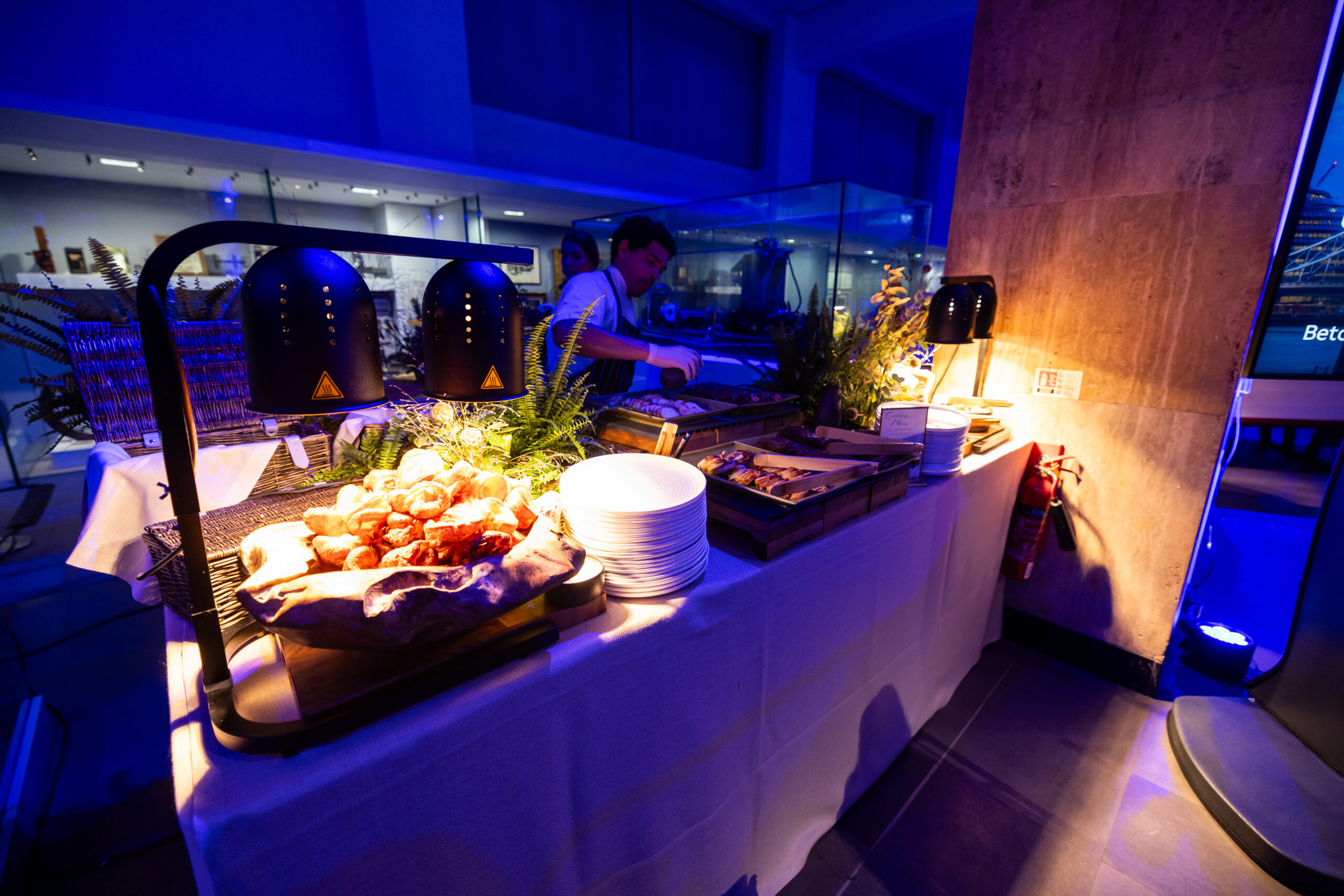 We are a Brazilian company, so we offered Brazilian and British food, which is always a crowd pleaser. We also chose food stations so our guests could get up and look about the gallery.