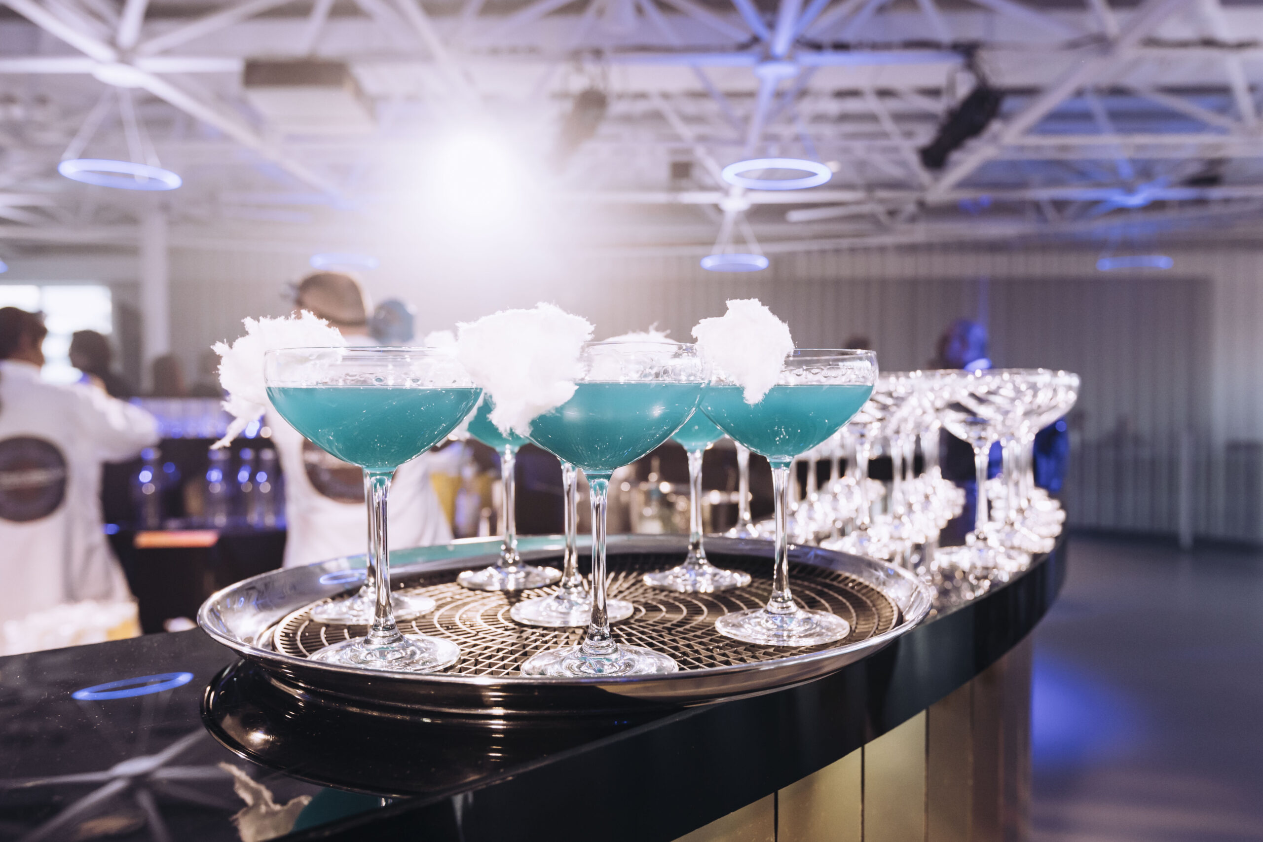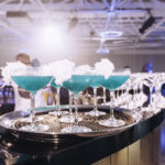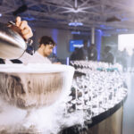 As we were going for a science themed style to the event, Moving Venue elevated the experience with bespoke cocktails and a circular gold bar in the middle of Illuminate. Moving Venue provided a hot fork buffet lunch and a petit gateau selection, as well as a canape reception with science themed desserts including a Passionfruit Planet and The Stars – dark chocolate ganache with mandarin gel in an almond biscuit sandwich.