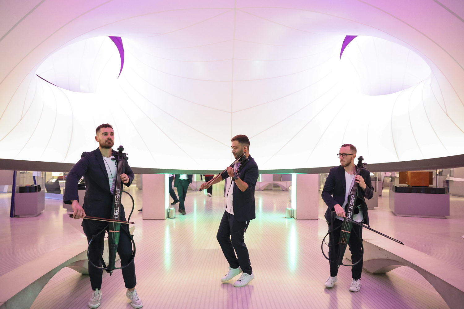 In Mathematics we were able to create explorative zones with our suppliers, including Lick Me I’m Delicious who mirrored our ‘Original Remastered’ theme and Moving Venue, and by placing stations around the gallery we were able to encourage a good delegate flow throughout the evening. We also had an enclosed staging space, where Ember Trio treated guests to classical performances of contemporary songs, which added energy and atmosphere to the space.