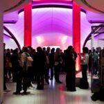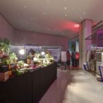 We wanted guests to feel free to explore, connect, and engage in thought‑provoking conversations. The evening started with drinks and networking, followed by talks delivered through headsets in a speakers’ corner setup. Our intention was to avoid a rigid format and instead provide a flexible space where people could move naturally between conversations, food stations, and the speakers. The pockets of space within the gallery made it easy for guests to form smaller discussion groups, while the main structure offered a natural focal point for the talks.