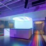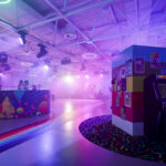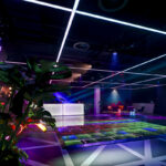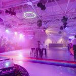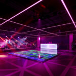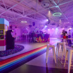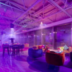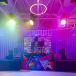 Illuminate’s built-in light bars and programmable circles proved to be a standout feature, enhancing the event’s dynamic lighting design. The in-house AV infrastructure, including screens and sound system, was fully leveraged to create the right ambiance. The space’s flexibility allowed us to craft distinct experiences, with one floor dedicated to high-energy entertainment and the other offering quieter, social zones, all while maintaining a cohesive 80’s theme.