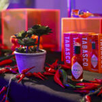 Working closely with Moving Venue, we ensured the catering experience was interactive and in line with the 80’s theme. A variety of food stations featuring live chefs served a diverse range of dishes. For example, the taco station was designed in bright oranges and pinks, aligning with the bold, funky patterns of the 80’s décor. Similarly, the pasta station embraced a retro rustic aesthetic with pampas grass and vintage-inspired pasta stands. The canapés were presented on themed trays, such as clear Perspex boxes adorned with disco balls and fairy lights, and retro light boxes added a glowing touch.