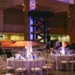 Wise Productions brought the magic to life with a blend of bespoke GOBOs, vibrant lighting and audio that was in perfect sync with the star of the show, Titan the Robot! The custom-designed GOBOs and lighting amplified the museum’s objects turning the ground floor spaces into a futuristic playground for guests. Titan stole the show during the drinks reception with his larger-than-life presence, and Wise made sure his every move and sound was crystal clear, connecting him seamlessly with the audience. In MMW guests were enthralled by the gala set-up, which was designed to provide ambient lighting to tables, highlight key gallery objects, pin spot staging and project bespoke GOBOs.
