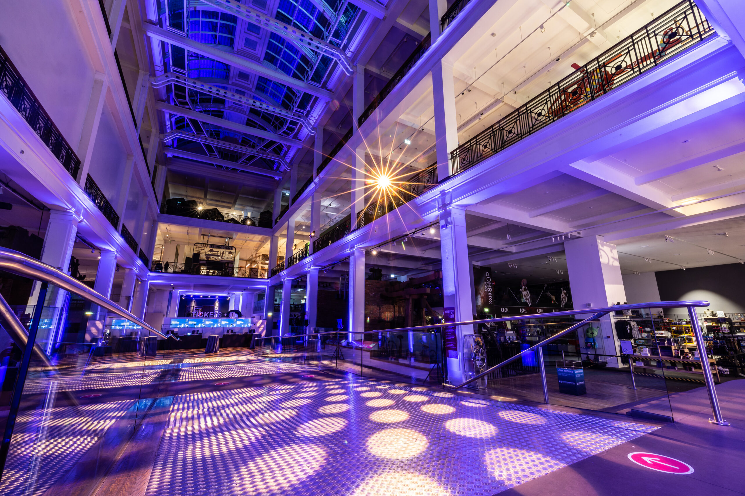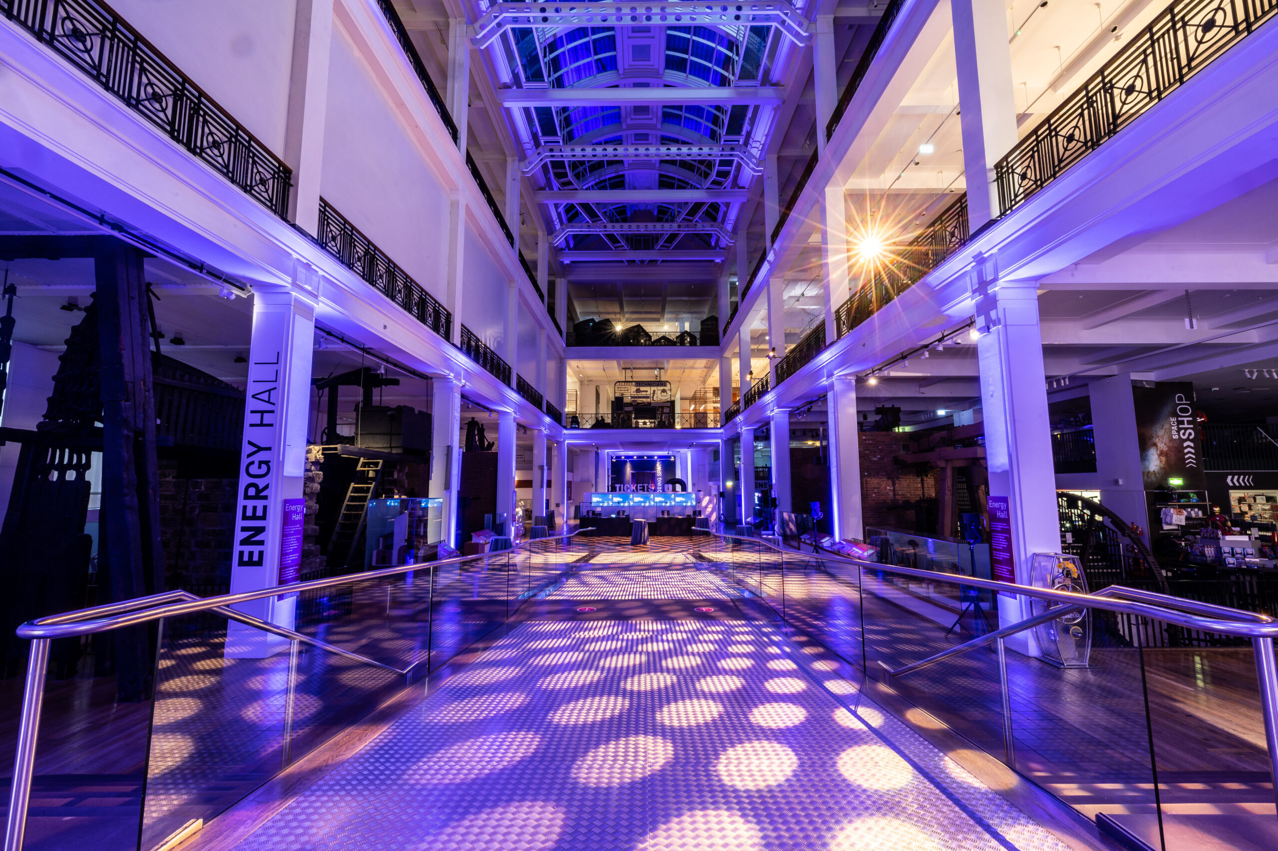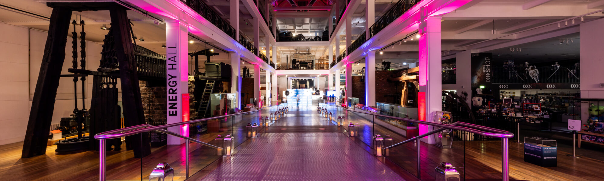 Utilise Energy Hall’s unique branding opportunities: four plasma screens can be used for logo branding, and you can select your own corporate colour to display on the colour-phasing ceiling.