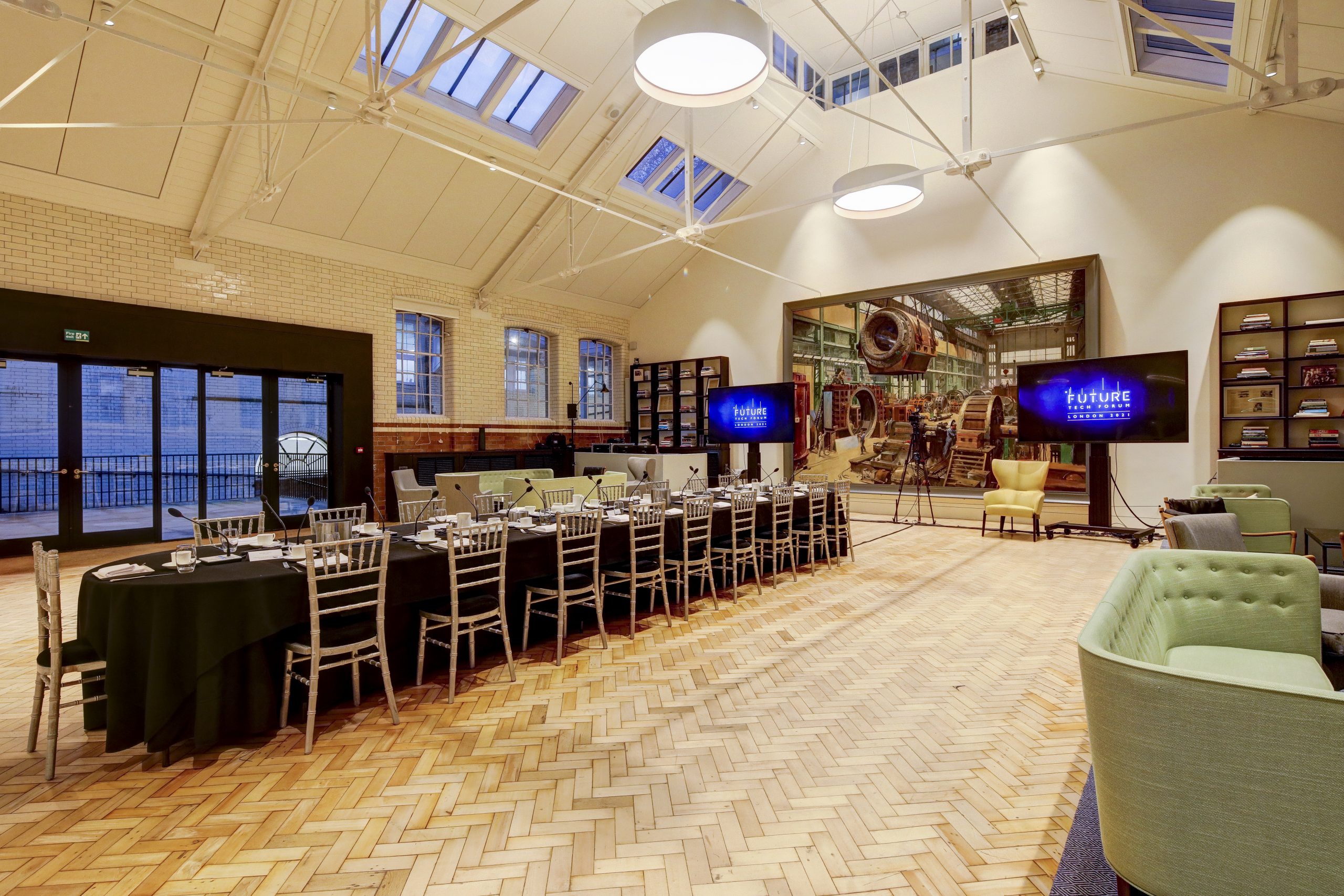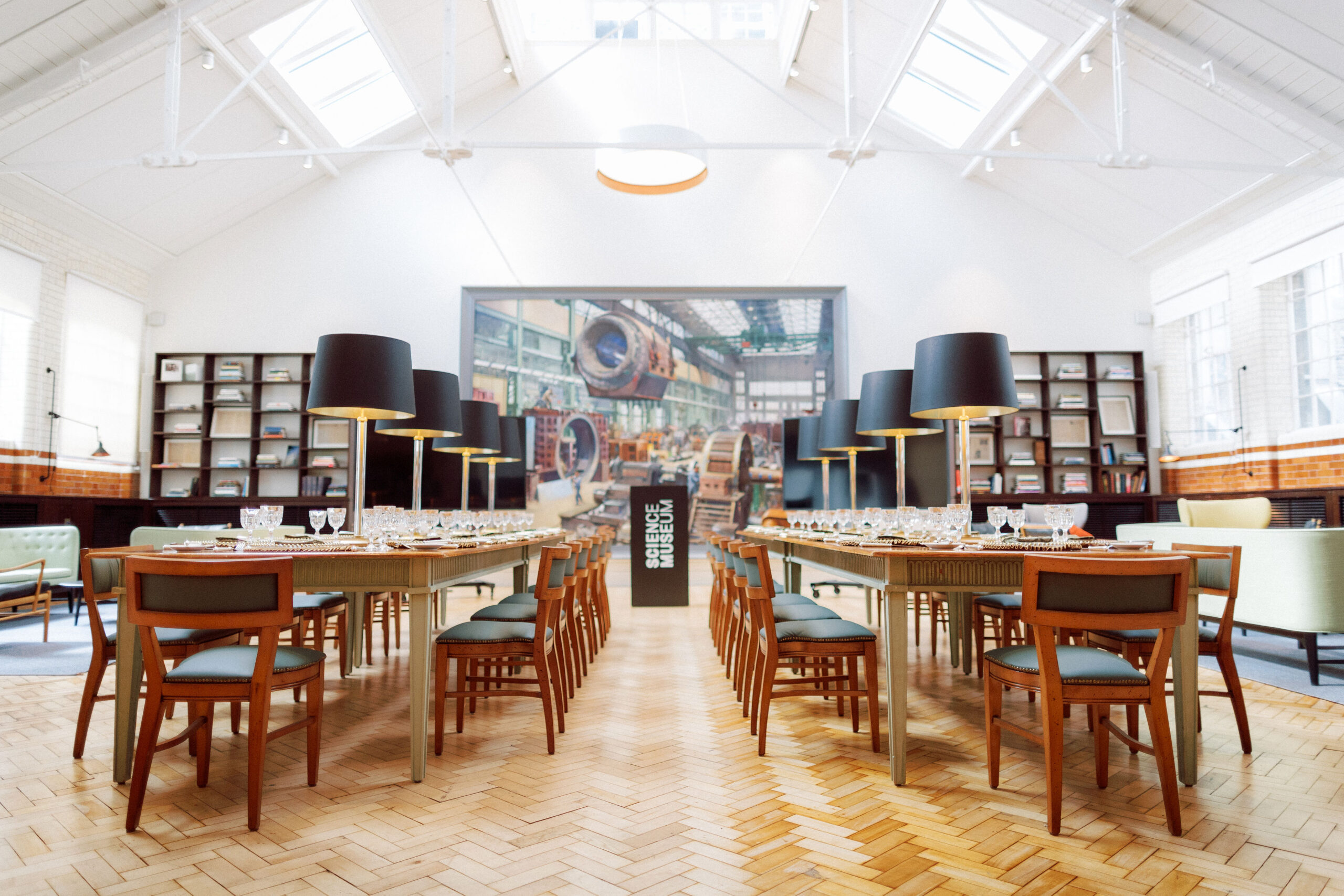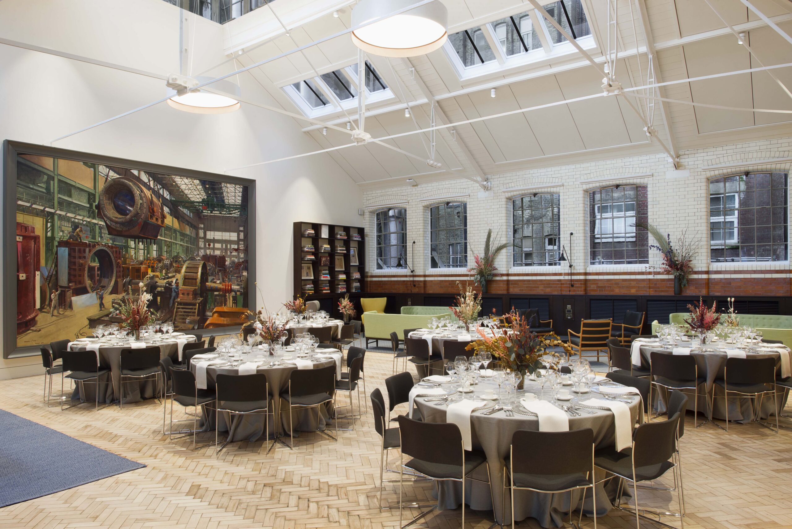 Among the original features is an open-plan courtyard area which can be enjoyed in conjunction with daytime hire of the Salon. The space is also enhanced with a range of hand-picked historical objects from the Science Museum collection, including a replica pressure suit from the last mission to the Moon and the stunning Electrical Engineering Workshop painting by Terence Cuneo.